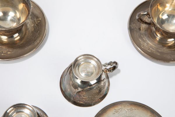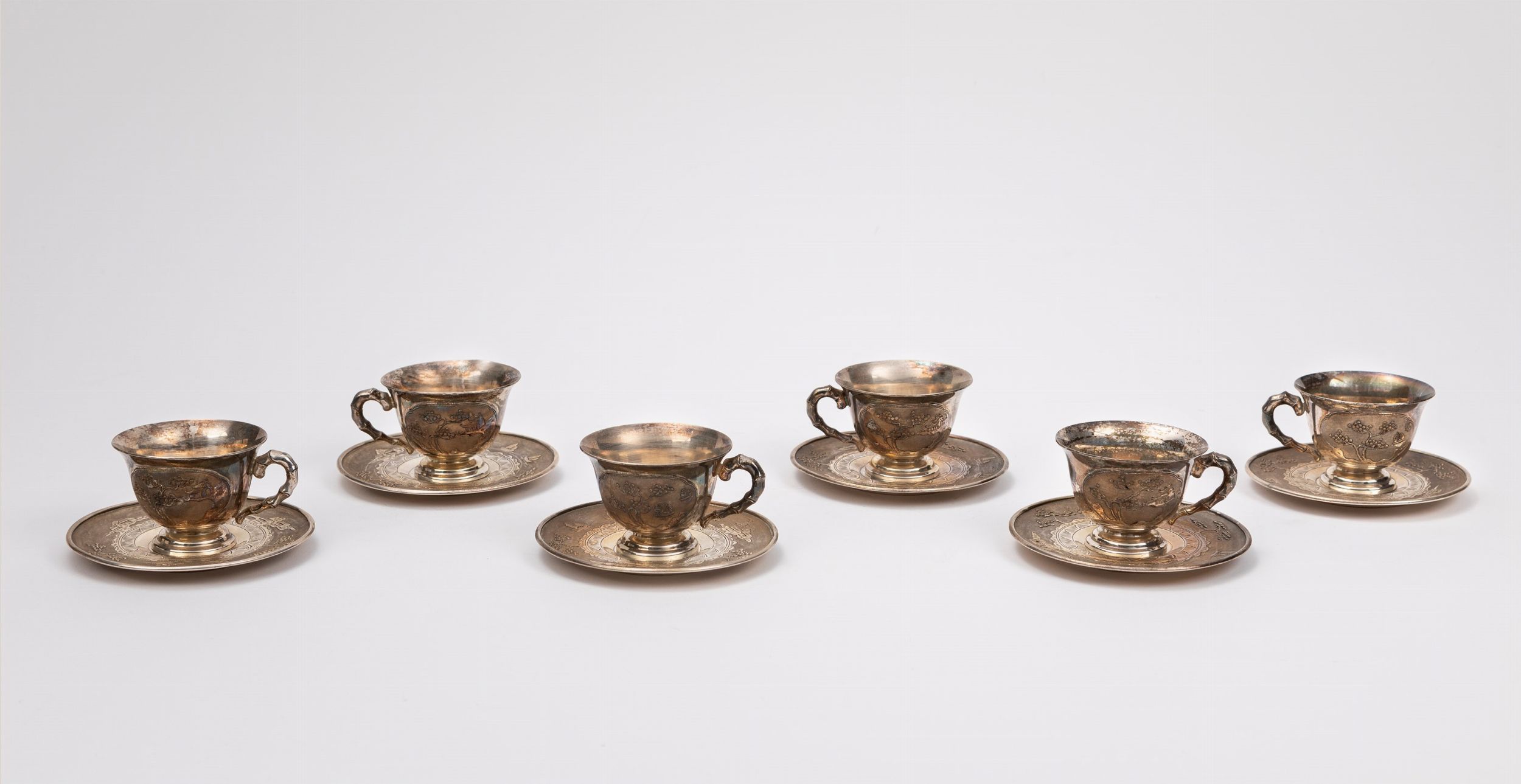 SET DI SEI PIATTINI E TAZZINE IN ARGENTO