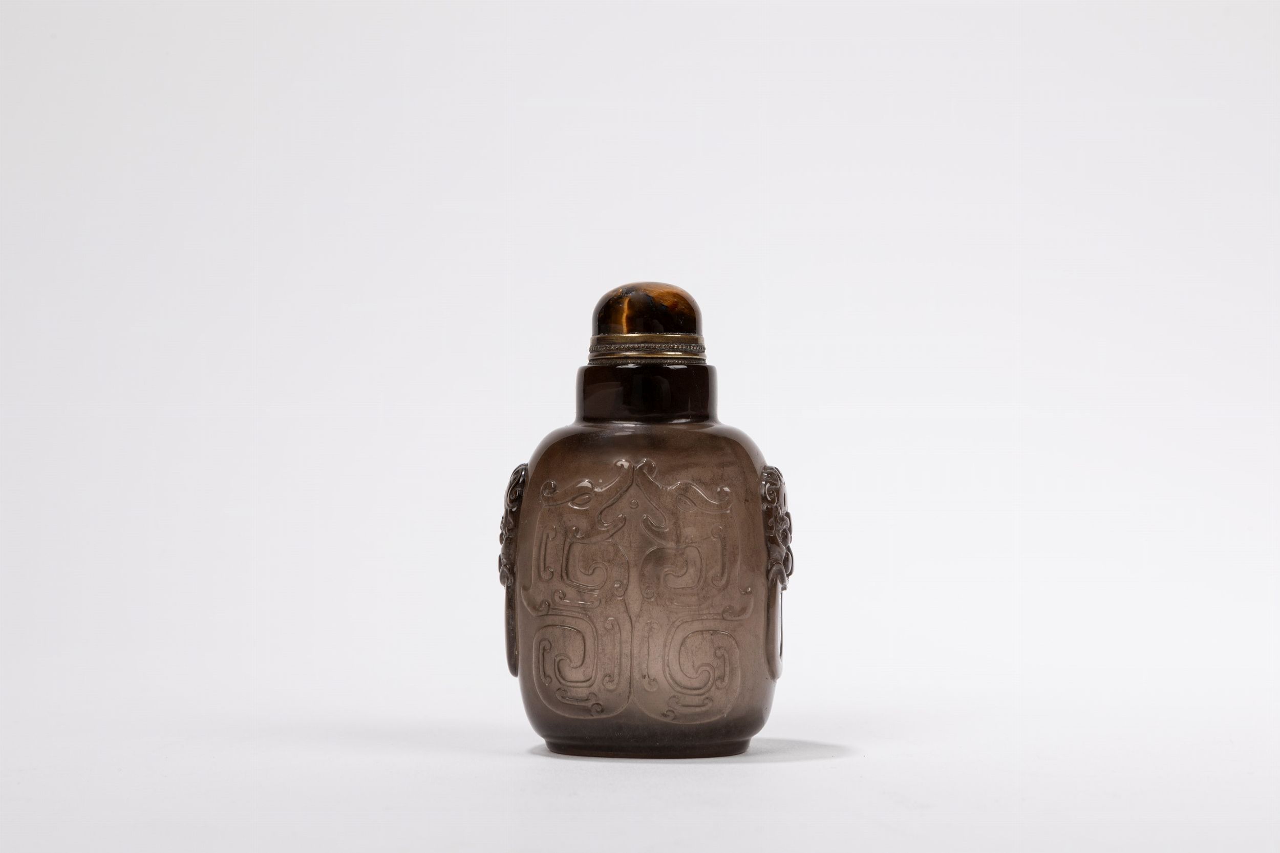 Cina, dinastia Qing, XIX secolo Ben intagliata sul corpo con una scena continua di due personaggi in un giardino tra alberi e rocce; il tappino in osso.Provenienza: dalla collezione del Professor Ferdinando Cappelletti.