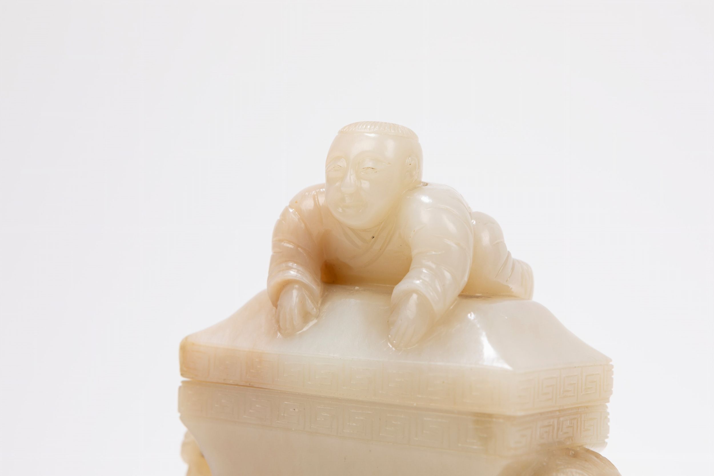 VASO IN GIADA BIANCA INTAGLIATA E COPERCHIO