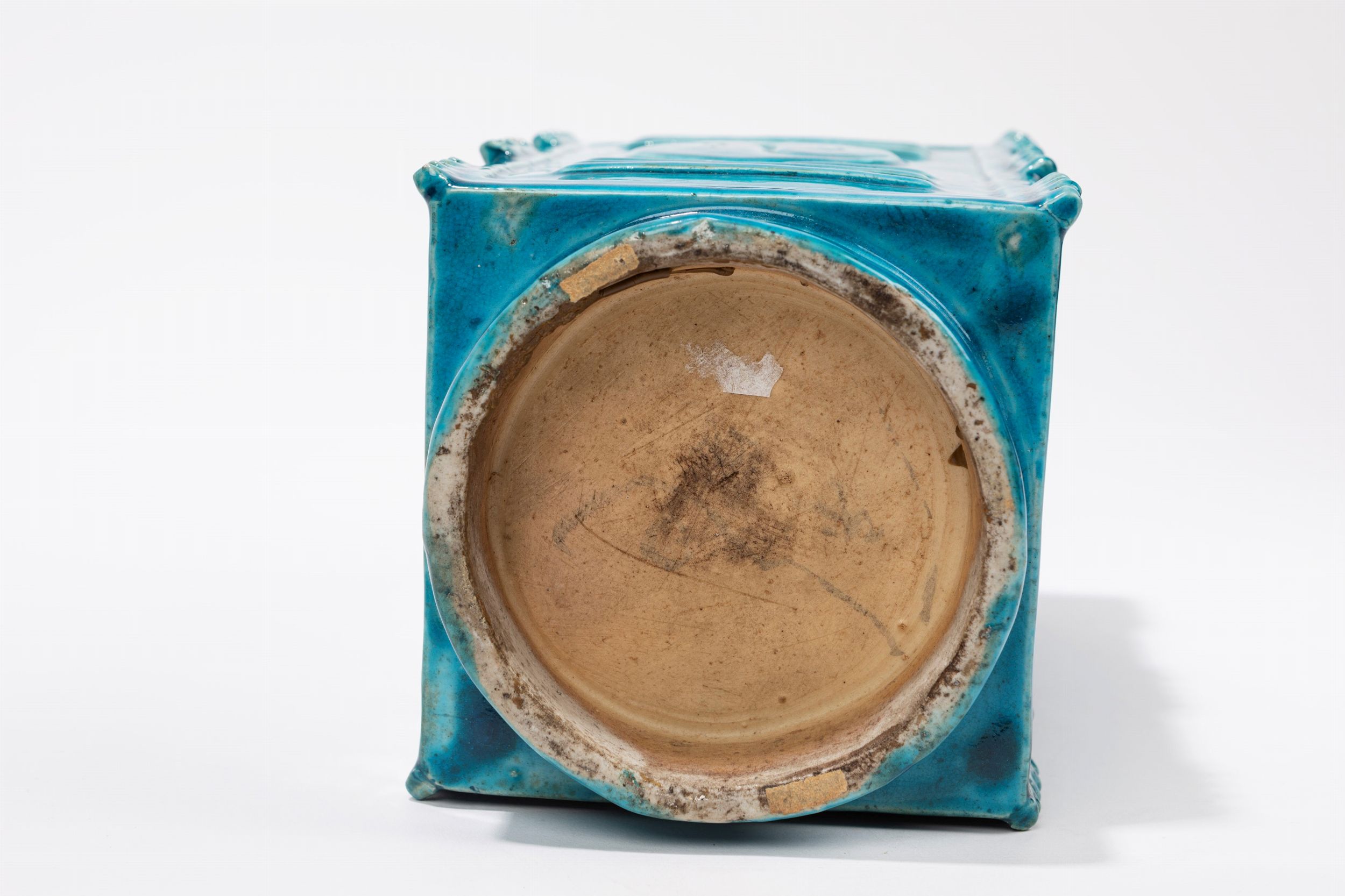 Cina, dinastia Qing, XVIII / XIX secolo Dalla classica forma cong è ben decorato su ogni faccia con caratteri e ying yang; è completamente ricoperto da uno smalto color turchese intenso.