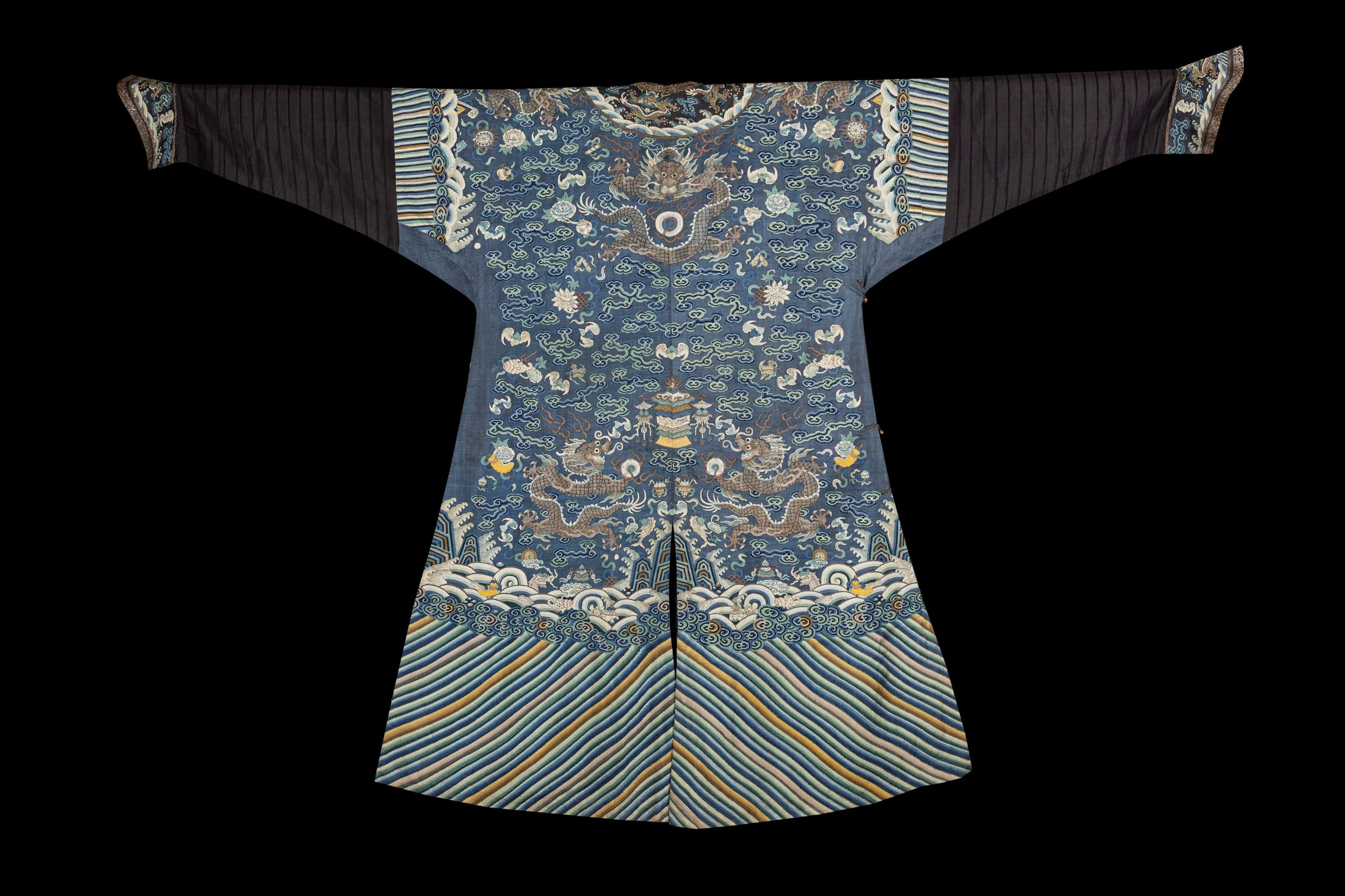 Cina, dinastia Qing, XIX secolo Decorato con la tecnica kesi, con i classici nove draghi che si rincorrono tra le nuvole, onde e bajixian.