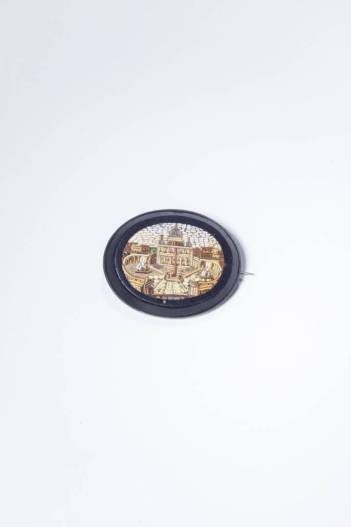 Cm 3 5x4 5 XIX secolo montatura in metallo con micromosaico su onice raffigurante Piazza San Pietro.