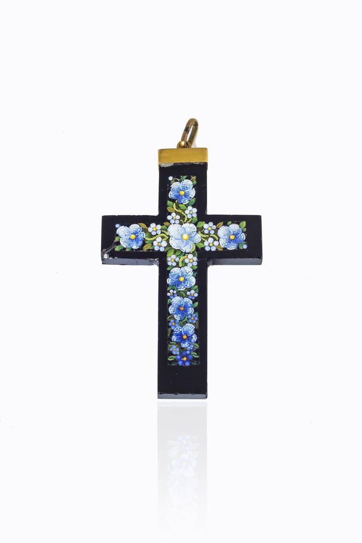 Cm 5 6x3 5 in onice XIX secolo a forma di croce (rotture) al centro micromosaico a motivo floreale.