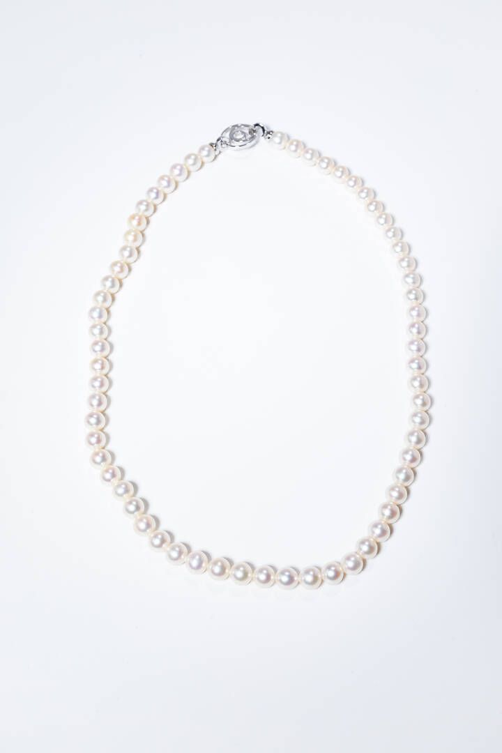 Lunghezza cm 43 composto da un filo di perle giapponesi del diam. di mm 6 5 ca. Chiusura in oro bianco di forma rotonda.