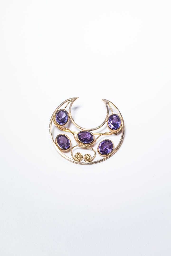 Peso gr 10 2 Diam. cm 4 2 in oro rosa a forma di mezza luna con ametiste ovali [..]