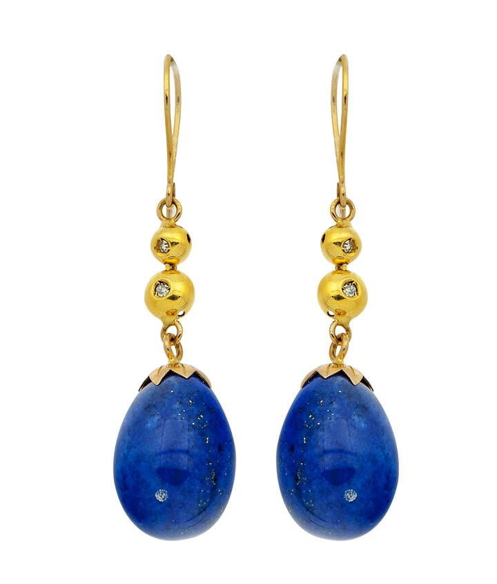Peso gr 11 8 pendenti in oro giallo ad amo con gocce di lapislazzuli e piccoli diamanti taglio 8/8.