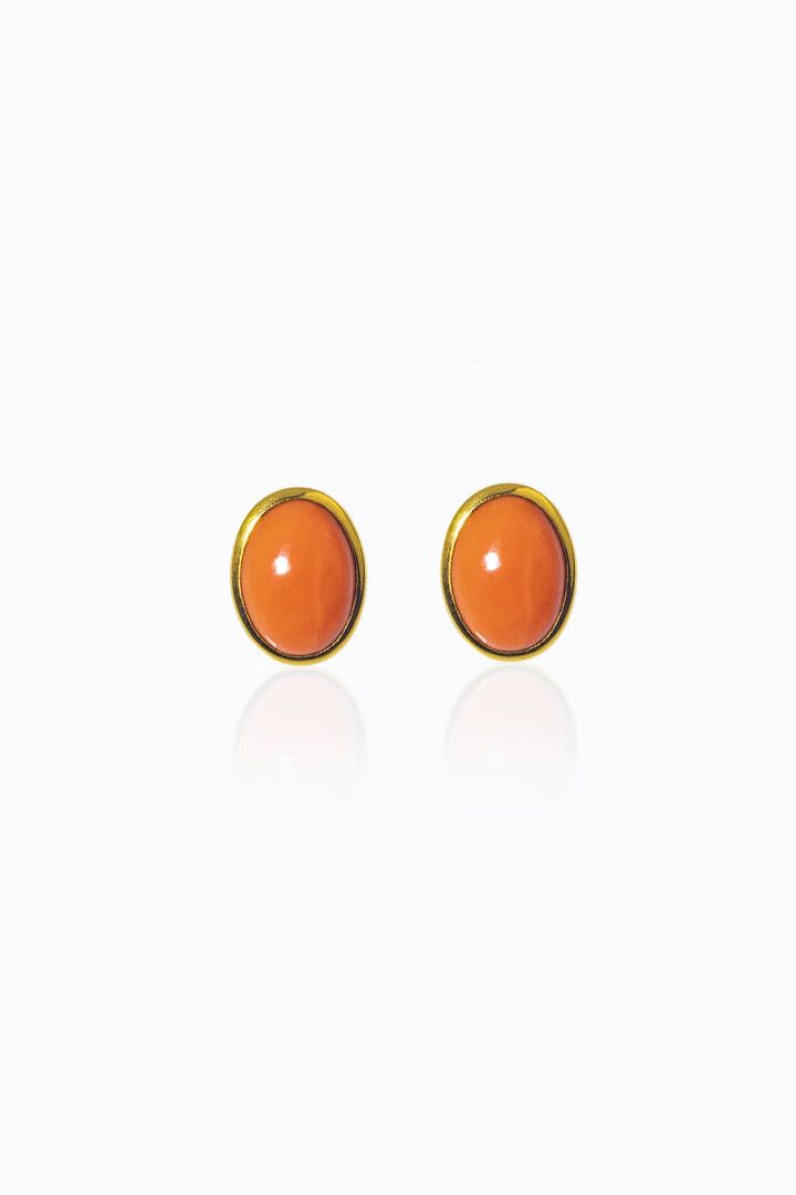 Peso gr 12 3 in oro giallo di forma ovale con corallo color salmone cabochon. Accompagnato da certificato telematico di autenticità Ce.S.Ar. Centro Studi Archeometrici.
