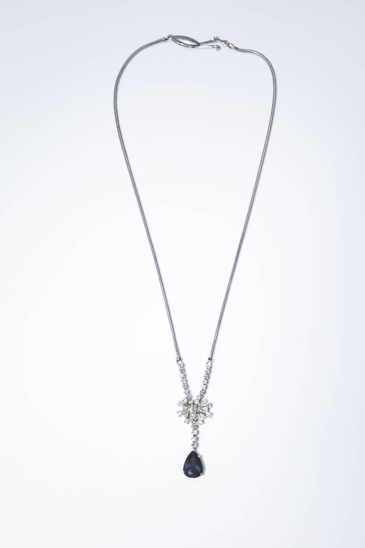 Peso gr 13 9 in oro bianco maglia coda di topo al centro zaffiro taglio a goccia di ct 1 80 ca sormontatato da diamanti taglio 8/8 e vecchio taglio per totali ct 0 90 ca.