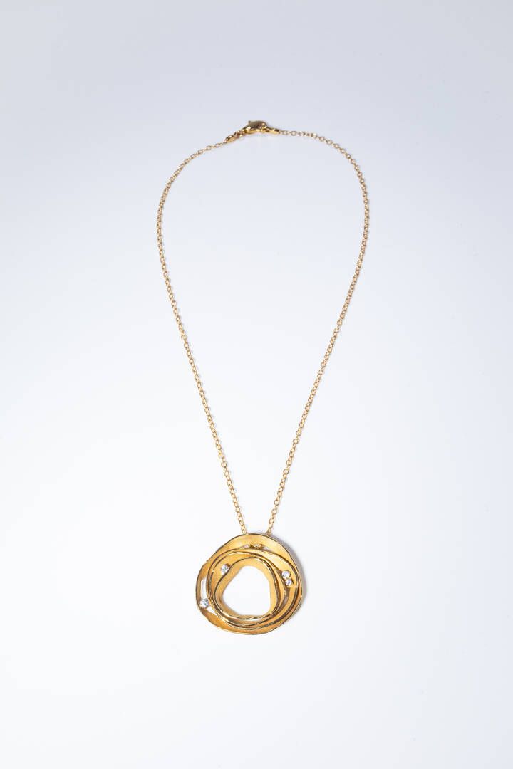 Peso gr 14 1 Catena con ciondolo in oro rosa lucido e satinato firmato Camilli serie Dune di forma rotonda con diamanti taglio brillante per totali ct 0 15 ca probabile colore G-H purezza IF-VVS.
