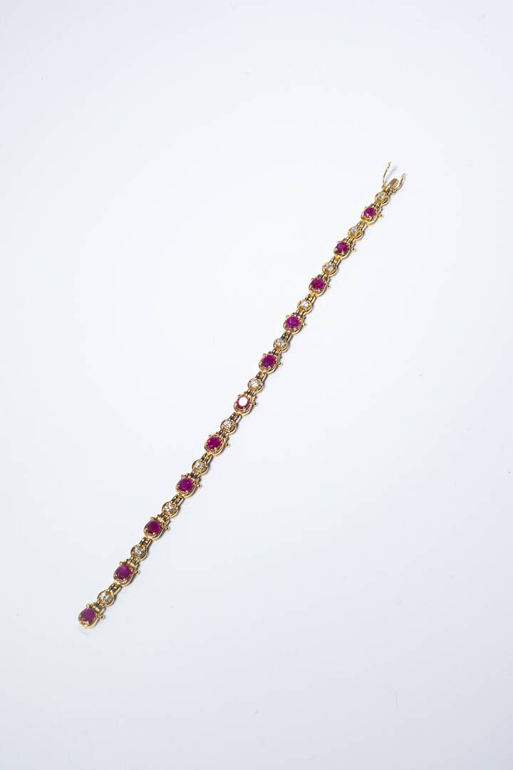 Peso gr 16 9 Lunghezza cm 17 5 in oro giallo con rubini ovali per totali ct 6 0 ca e diamanti taglio brillante per totali ct 0 60 ca.