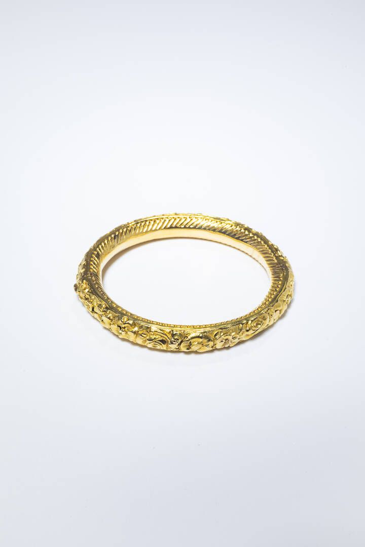 Peso gr 18 5 Diam. interno cm 5x5 5 in oro giallo anni '20 a canna vuota con decori floreali. Piccola mancanza di una corolla di un fiore.