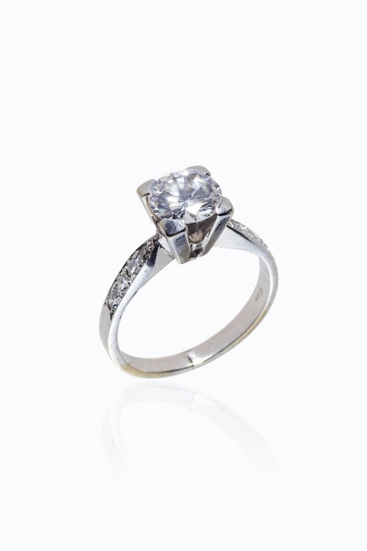 Peso gr 3 1 Misura 11 (51) in oro bianco con diamante taglio brillante di ct 1 0 ca probabile colore H purezza VS1e lungo il gambo diamanti a decoro