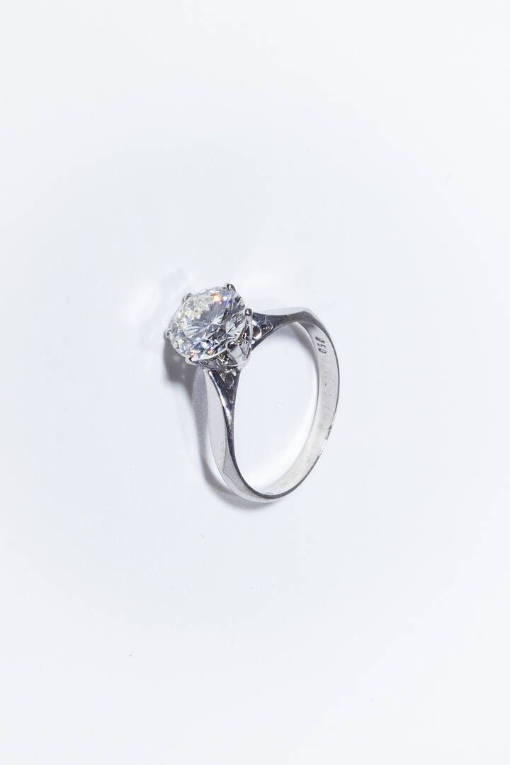Peso gr 3 4 Misura 16 (56) in oro bianco con al centro diamante solitario di ct 1 90 ca probabile colore J purezza VVS.