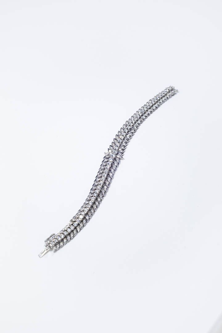 Peso gr 30 3 Lunghezza cm 18 in oro bianco anni '50 con tre file di diamanti taglio brillante per totali ct 5 0 ca