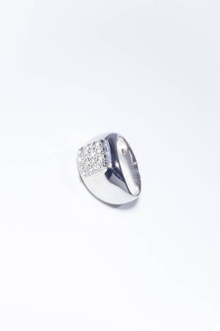 Peso gr 4 8 Misura 5 (45) in oro bianco sommità con inserto rettangolare con diamanti taglio 8/8 per totali ct 0 16 ca.