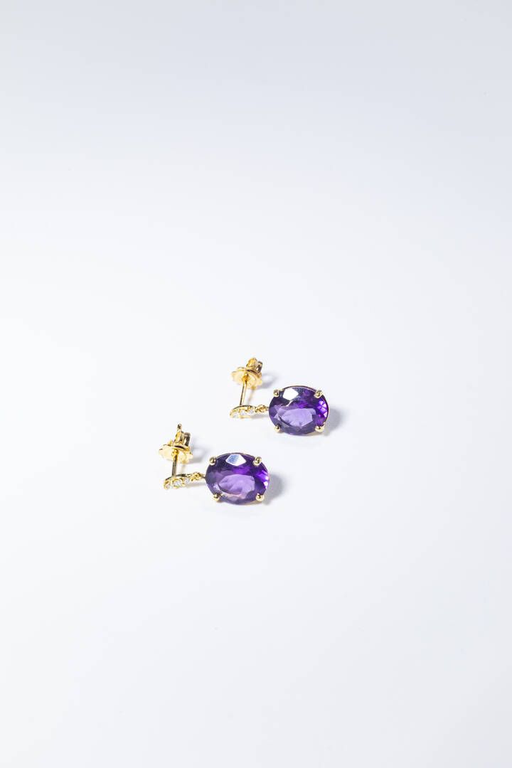 Peso gr 5 1 in oro giallo con due ametiste taglio ovale pendenti per totali ct 7 [..]