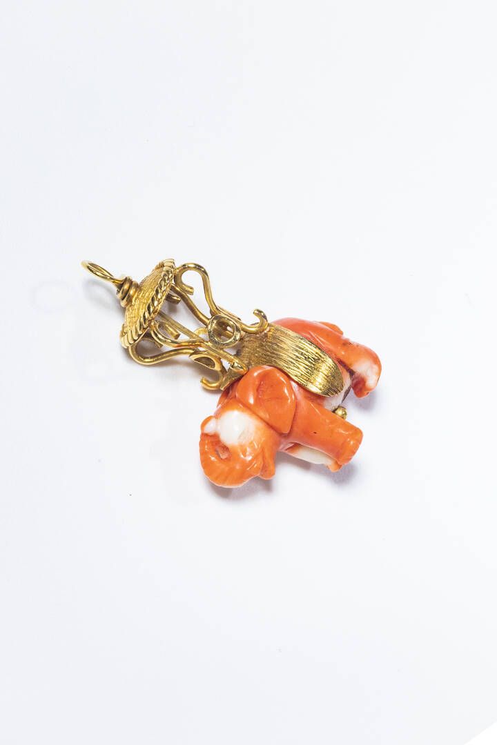 Peso gr 5 2 in oro giallo con elefante in corallo nei toni del salmone. Accompagnato [..]