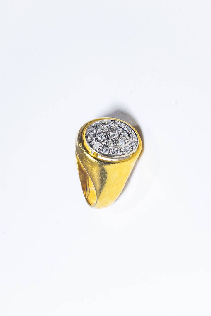 Peso gr 5 4 Misura 8 (48) in oro giallo sommitŕ ovale con pavé di diamanti taglio brillante per totali ct 0 15 ca.