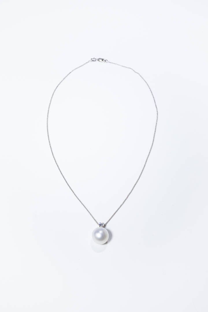 Peso gr 6 0 in oro bianco con perla australiana del diam. di mm 12 ca sormontata da un diamante taglio brillante di ct 0 21 ca probabile colore G-H purezza IF-VVS.
