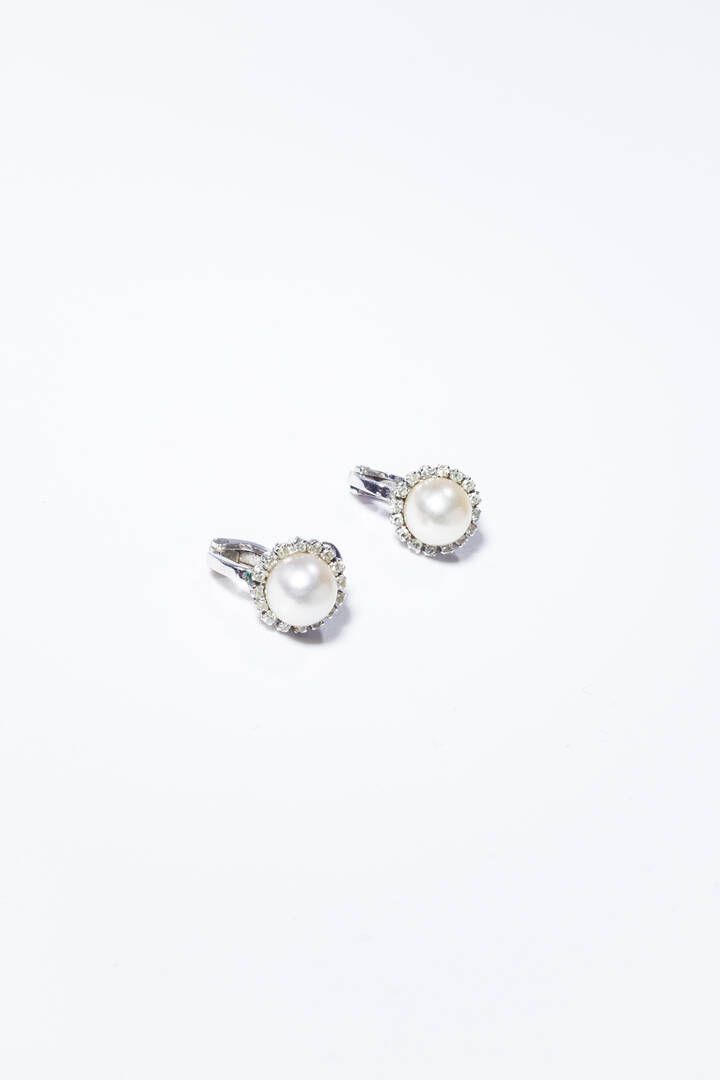 Peso gr 6 1 in oro bianco a clip con due perle giapponesi del diam. di mm 8 ca contornate da diamanti taglio 8/8 per totali ct 0 20 ca.