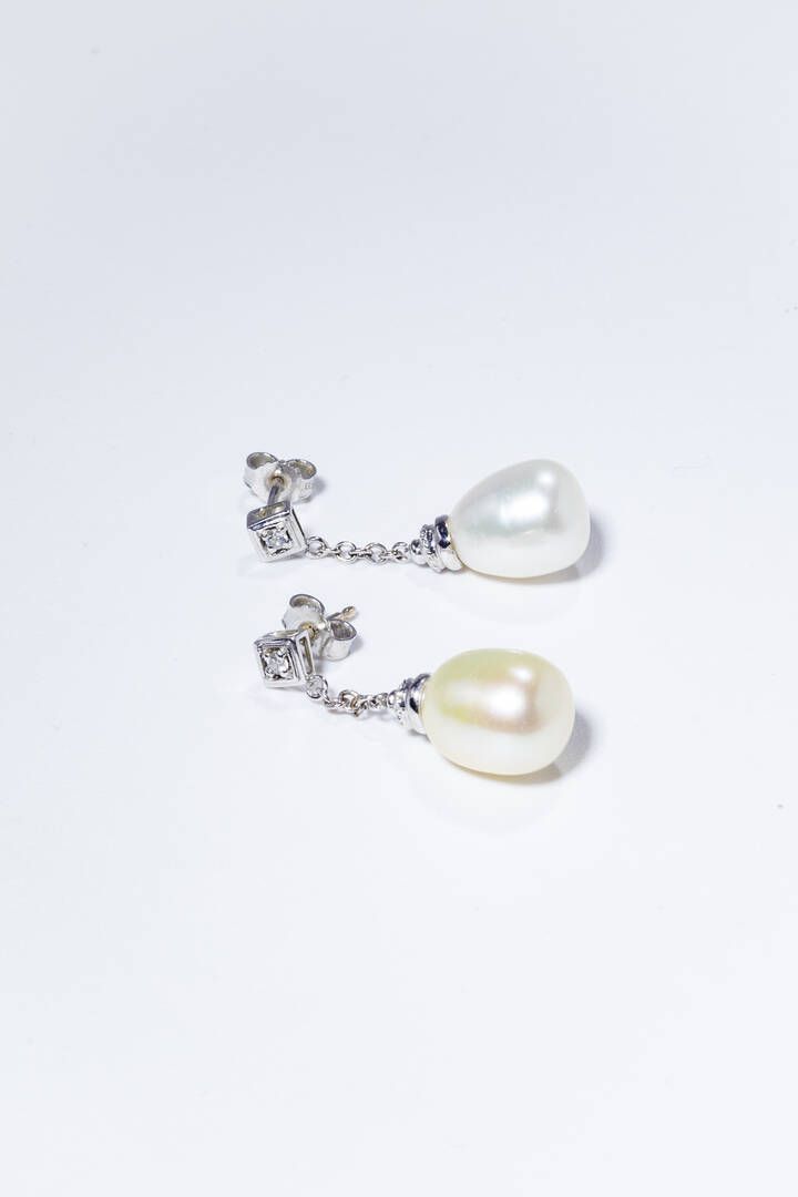 Peso gr 6 3 in oro bianco con due perle scaramazze di acqua dolce pendenti ed ai [..]
