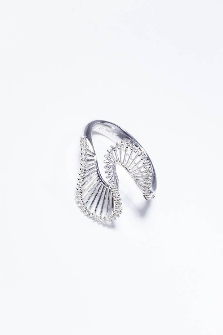 Peso gr 6 4 Misura 20 (60) in oro bianco sommità traforata a voluta con diamanti [..]