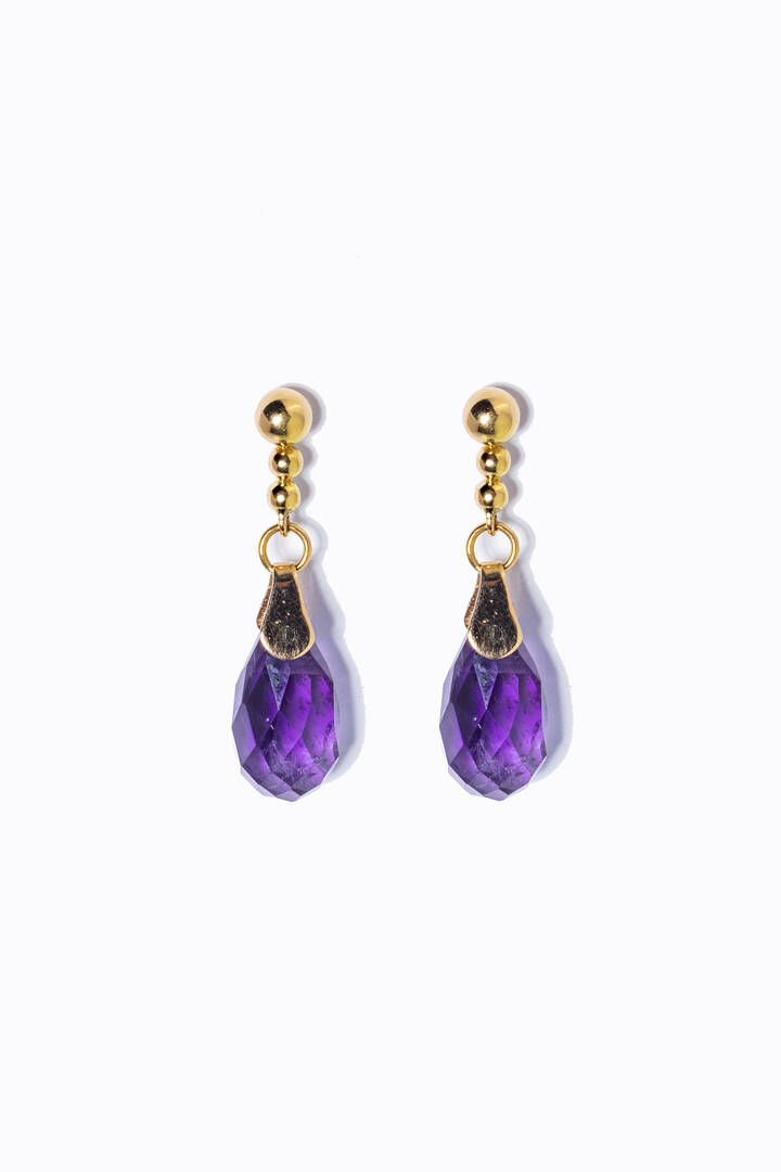 Peso gr 6 9 pendenti in oro giallo con due gocce briolette di ametiste.