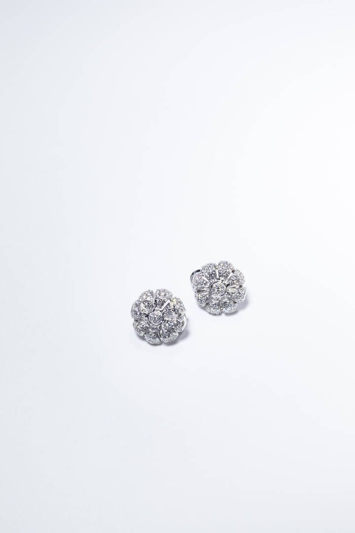 Peso gr 7 2 in oro bianco a lobo con due margherite stilizzate in pavé di diamanti per totali ct1 50 ca colore G purezza IF -VVS.