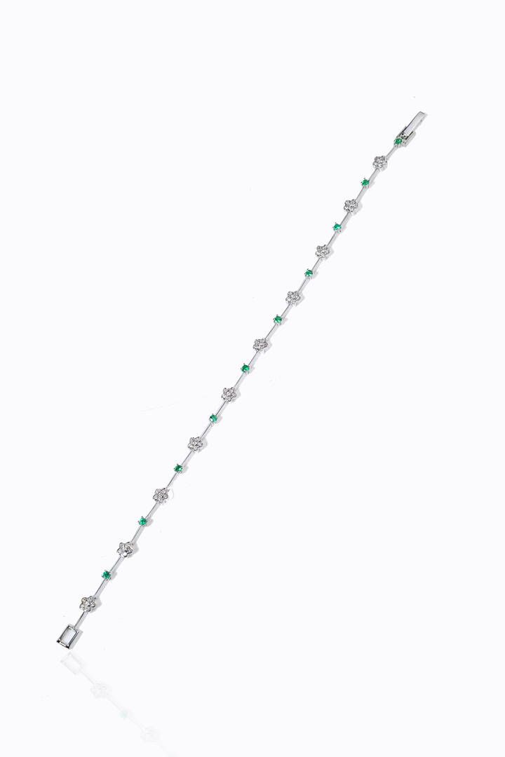 Peso gr 7 2 Lunghezza cm 17 5 in oro bianco composto da segmenti rigidi con smeraldi taglio rotondo per totali ct 0 31 ca alternati a diamanti taglio brillante per totali ct 0 33 ca probabile colore G-H purezza IF-VVS.