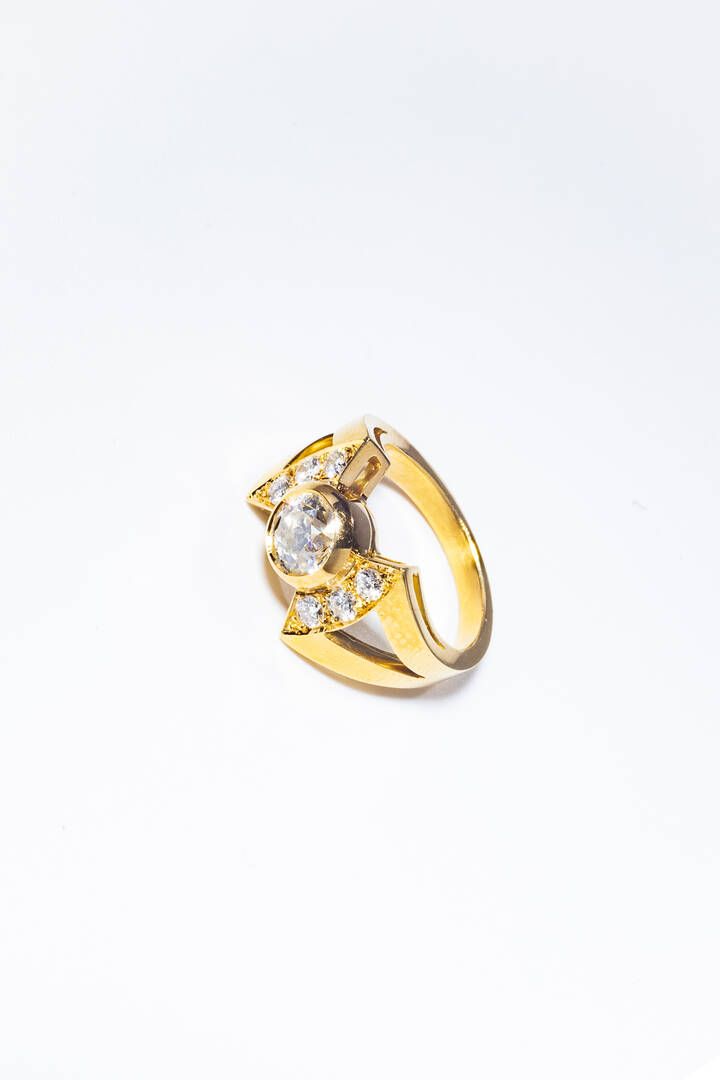 Peso gr 7 8 Misura 10 (50) in oro giallo sommità a fiocco al centro diamante taglio [..]