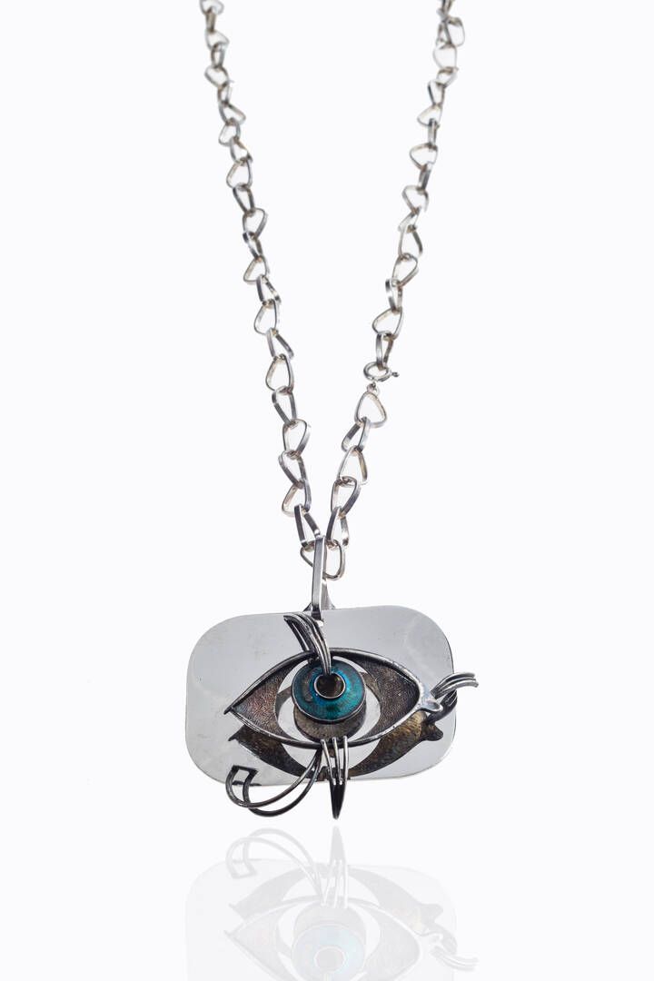 Peso gr 74 7 Lunghezza cm 43 Catena con ciondolo in argento 925/1000 a forma di occhio stilizzato con smalto verde
