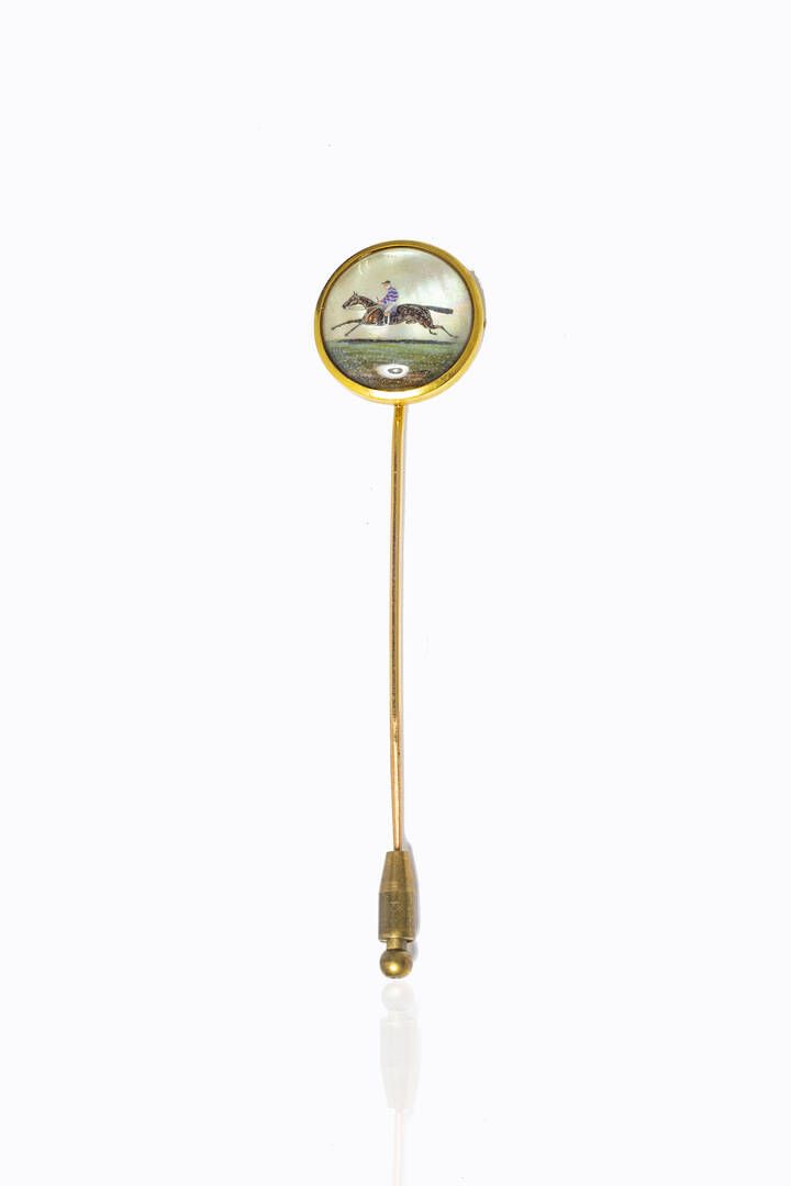Peso gr 8 0 in oro giallo a bassa caratura con madreperla dipinta con cavaliere e cavallo (Difetti)