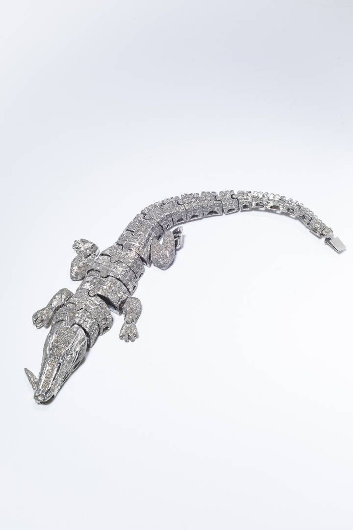 Peso gr 89 Lunghezza cm 21 Bracciale in argento 925/1000 firmato Palladino a forma di coccodrillo con corpo satinato e composto da segmenti mobili.