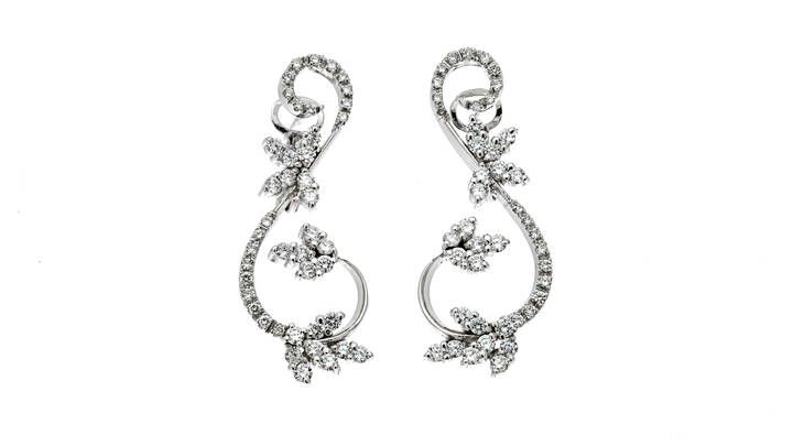 Peso gr 9 2 pendenti in oro bianco a forma di racemi vegetali in diamanti taglio brillante per totali ct 1 64 ca probabile colore G-H purezza IF-VVS.