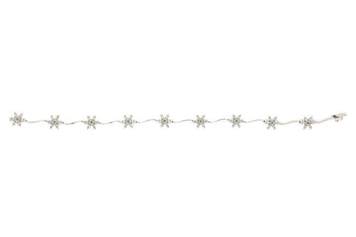 Peso gr15 6 Lunghezza cm 17 5 composto da segmenti ad onda in oro bianco alternati a fiori in diamanti taglio brillante per totali ct 0 88 ca probabile colore G-H purezza IF-VVS.