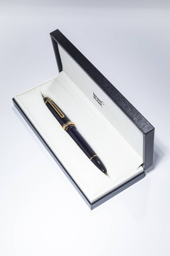 Stilografica Montblanc modello Meisterstuck. Cappuccio e corpo in resina. Rifiniture in oro 14 Kt. Corredata di scatola e controscatola.