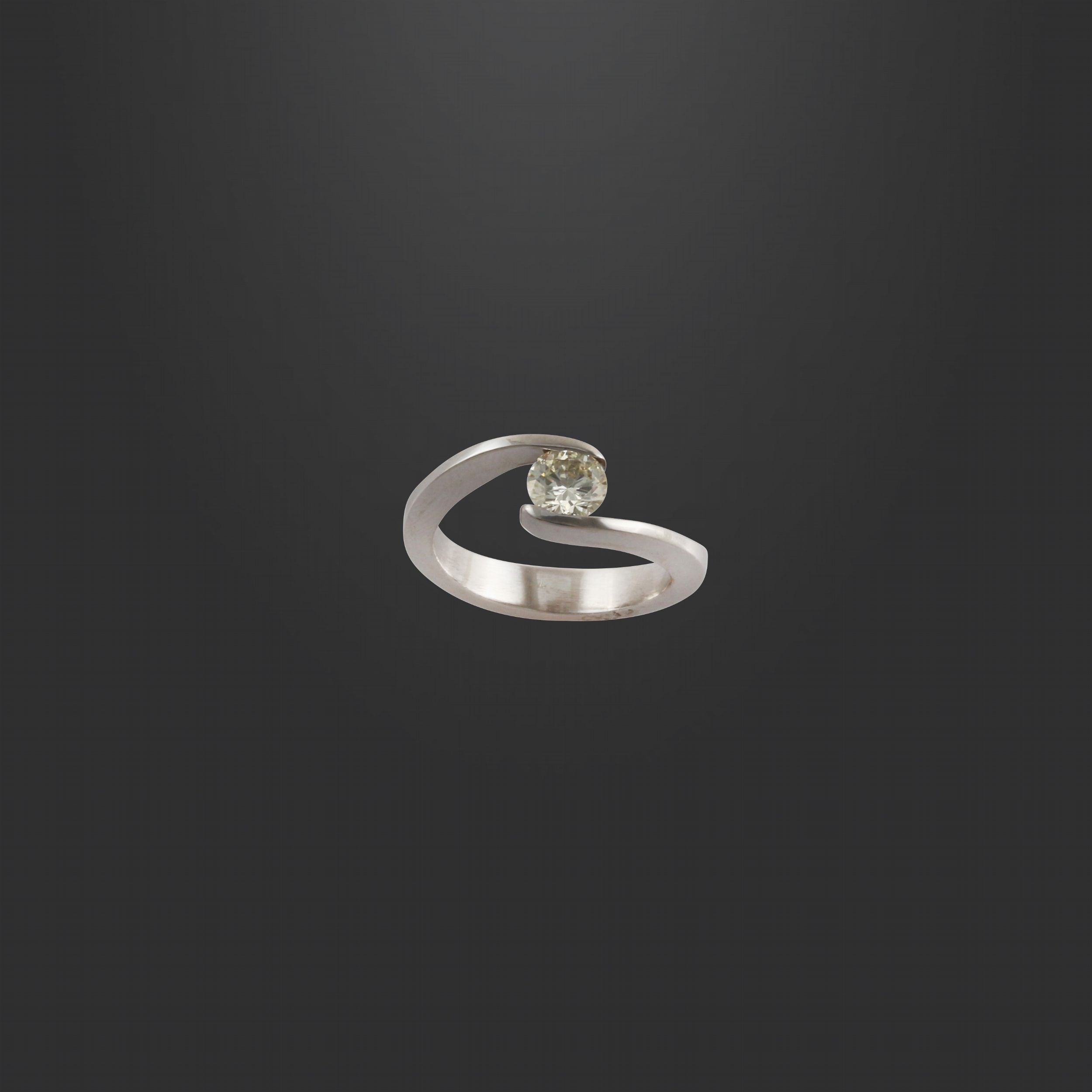 in oro bianco con brillante del peso di 0,75 ct ca., gr. 6,7.