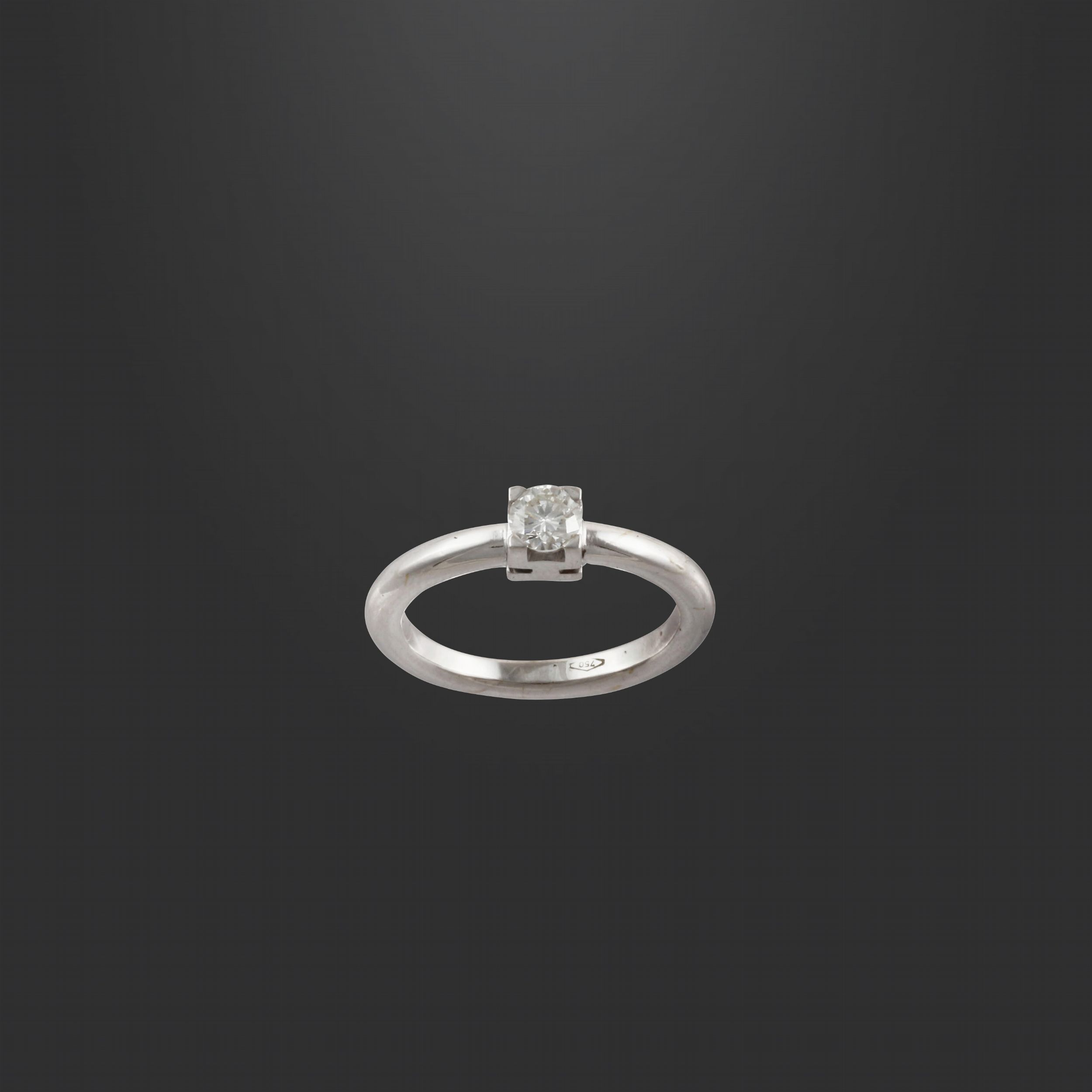 in oro bianco con brillante del peso di 0,35 ct ca., gr. 5,4.