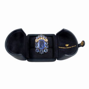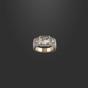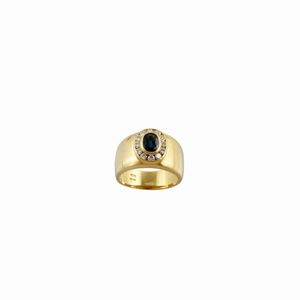 in oro giallo con grande quarzo madera, gr. 16,3. Misura 14