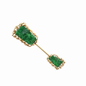 in quarzo rosa con scultura in argento raffigurante cupido. Corredata da custodia. Dimensioni 16 x 12,5 altezza [..]