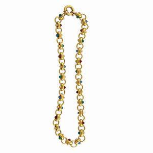 in oro giallo e bianco a maglie tonde intervallate da sfere in oro, corniola, crisoprasio e calcedonio, gr. 42,2. [..]