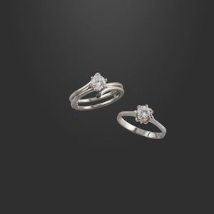in oro bianco ciascuno con brillante al centro, rispettivamente del peso di 0,50 e 0,45 ct ca., gr. complessivi [..]