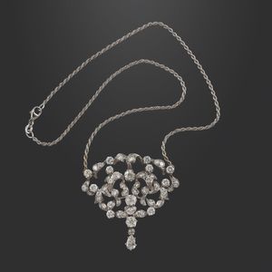 in oro bianco con pendente a cuore in pavé di brillanti del peso complessivo di 1,14 ct ca., sostenuto da catenina, [..]
