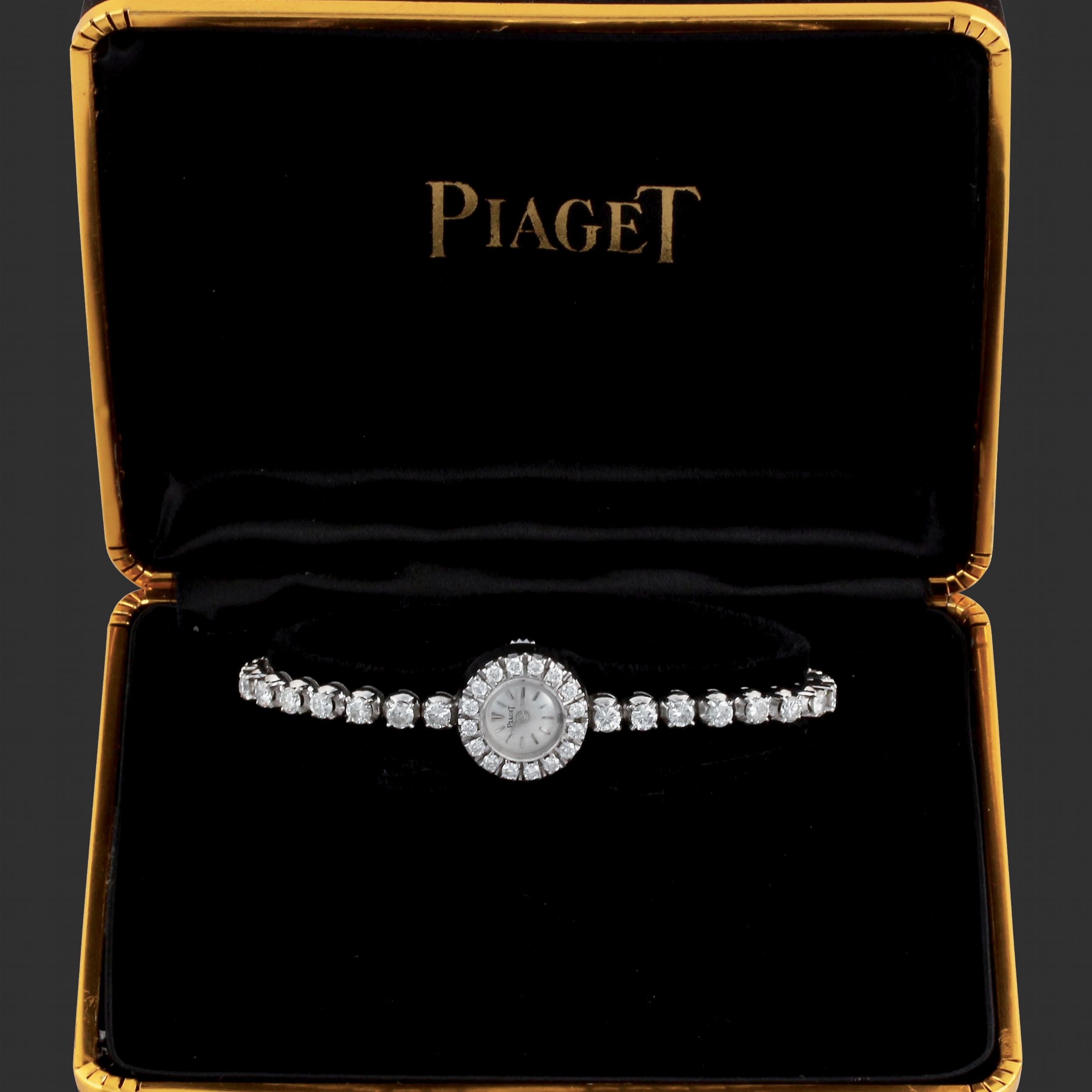 in oro bianco con brillanti del peso complessivo di 3 ct ca., gr. 18. Corredato da custodia originale.Lunghezza bracciale 15 cmAnni '60