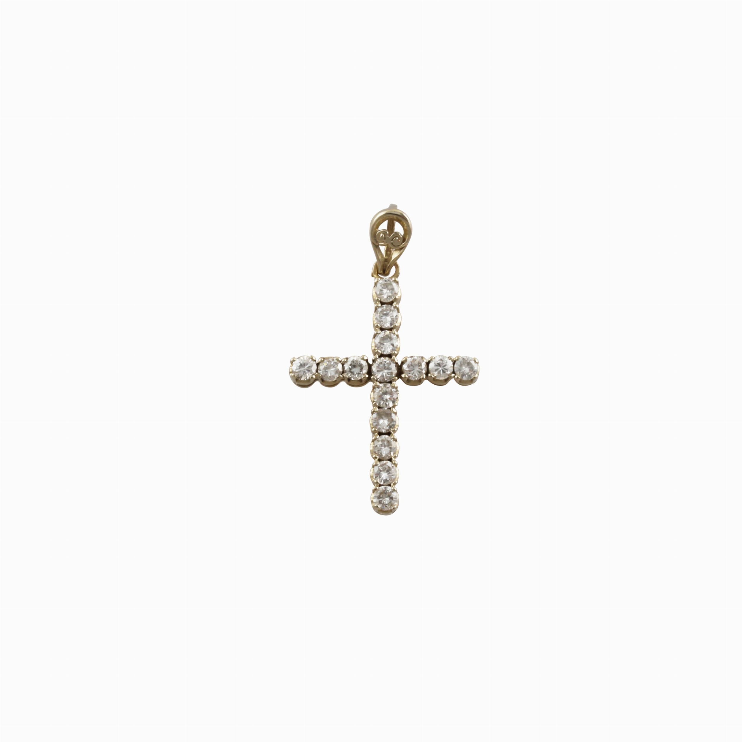 croce in oro bianco con brillanti del peso complessivo di 1,10 ct ca., gr. 3,1.Dimensioni 4 x 2,3 cm ca.