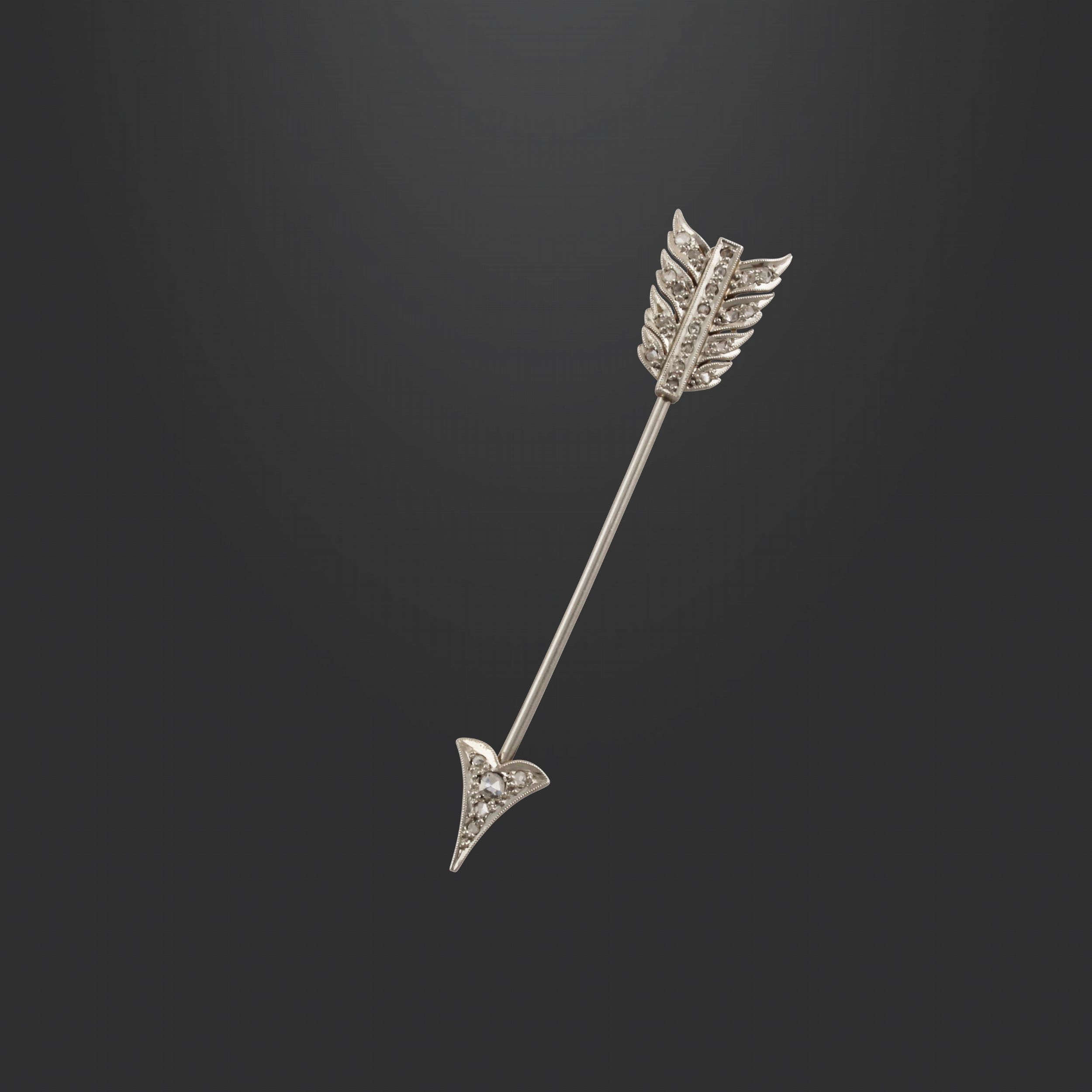 freccia in platino e oro giallo ornata da diamanti, gr. 2,8.