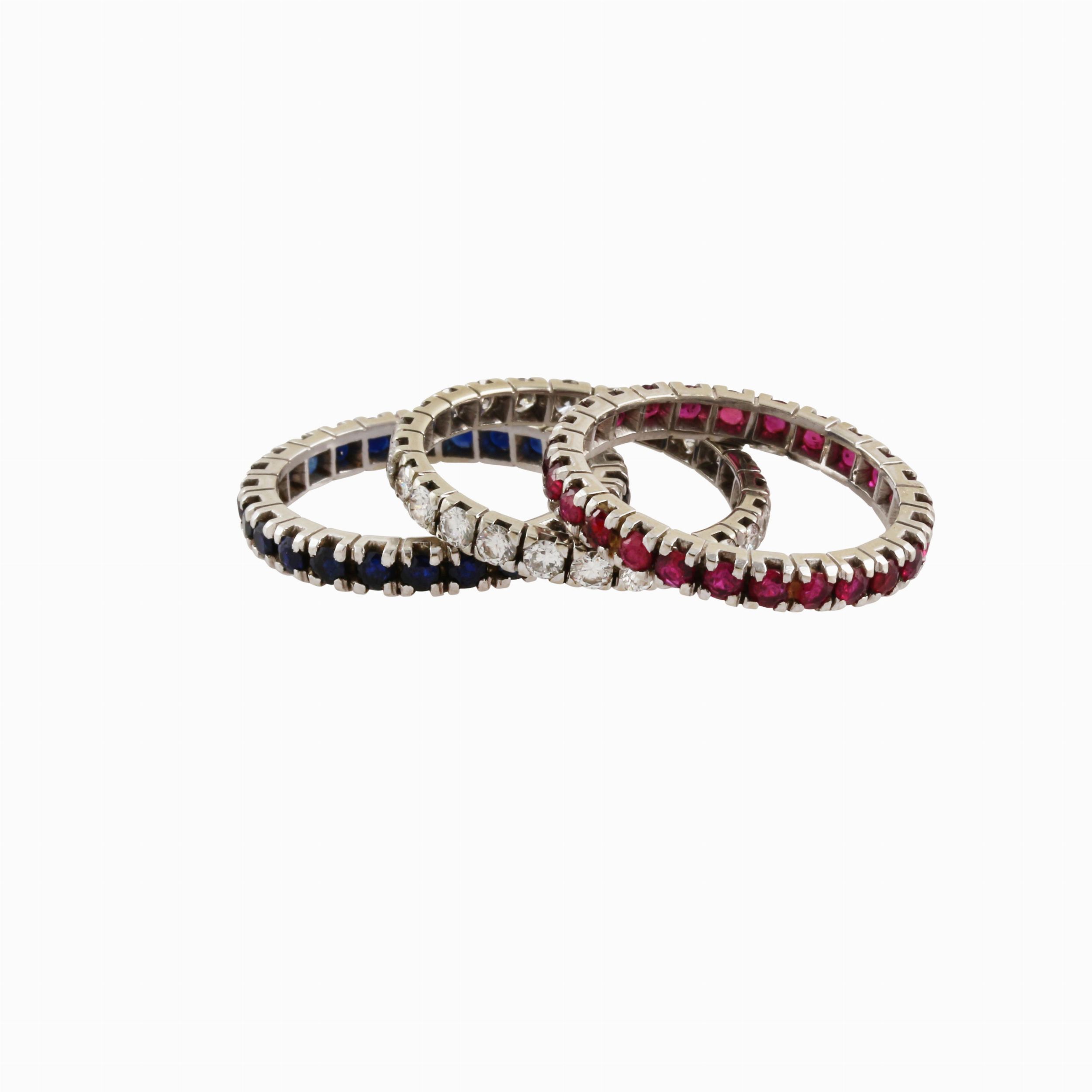 in oro bianco rispettivamente percorse da brillanti, zaffiri e rubini, gr. complessivi 10.