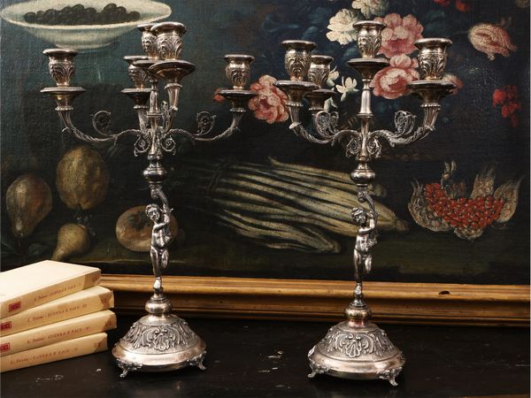 Coppia di candelabri in argento, Ottanelli & Castaldi Firenze