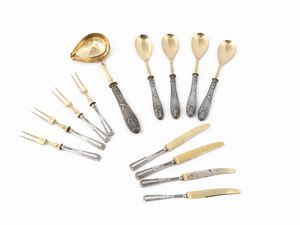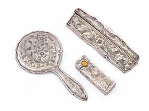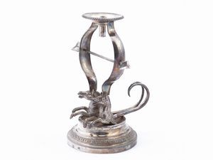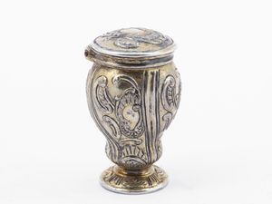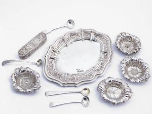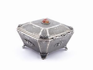 gr 1200, h cm 9,5x34x22 Città di Sheffield, 1909 due ampolle cubiche in cristallo molato rilegate in argento, [..]