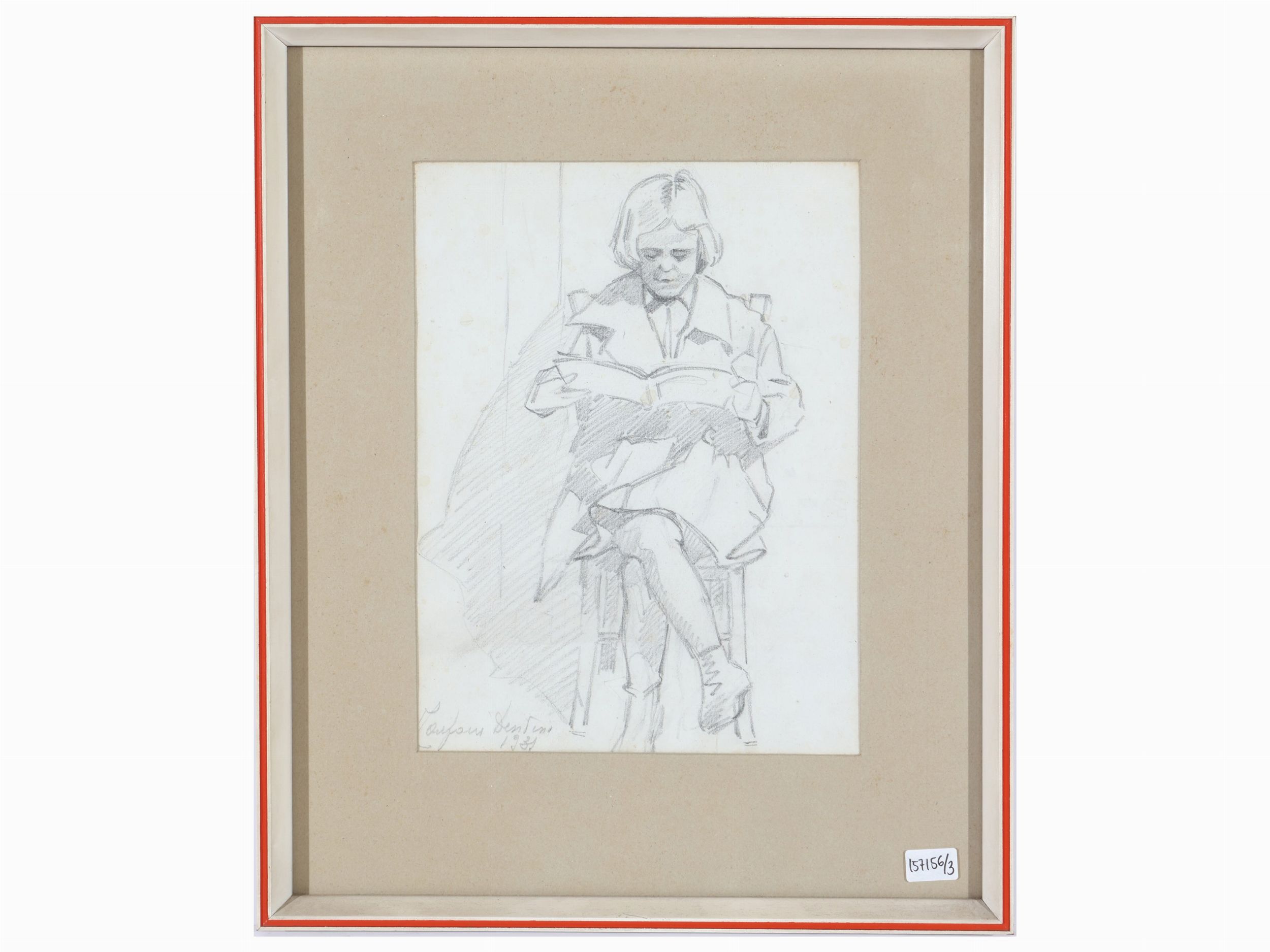 Oreste Zuccoli (1889-1980), Ritratto di ragazza, matita su carta, firmato, in cornice; Desiderio Tanfani (1897-1977), Ritratto femminile 1931, matita su carta, firmato e datato, in cornice, Mino Maccari (1898-1989), Composizione, xilografia, prova d'autore, firmata, in cornice